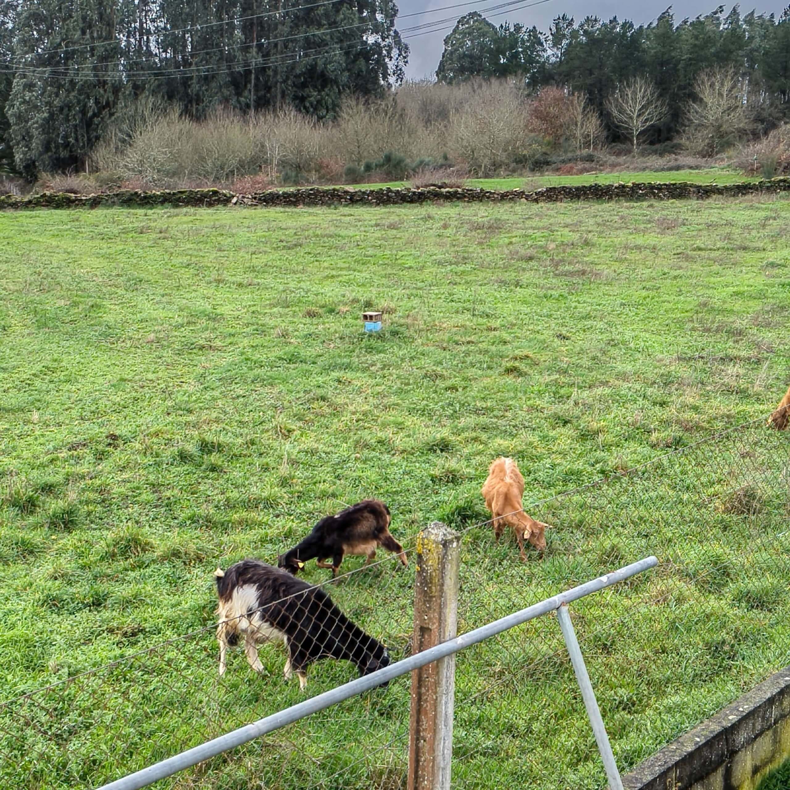 Van de week was er nog wat reuring in het dorp: bijna een geit onder de auto. Gelukkig liep dat goed af. Verder is het hier vooral erg rustig. Overdag komt er af en toe een auto voorbij, hoor je de melkmachine van de boerderij verderop, vogels, of de boerderijhonden. ‘S nachts hoor je echt niets, behalve twee uilen die naar elkaar roepen. De een links van het huis en de andere rechts (Stereo 🙂 ). Ondertussen blijven onze nieuwe vriendjes dagelijks even op bezoek komen om een beetje te spelen en het terrein af te bakenen 🙂