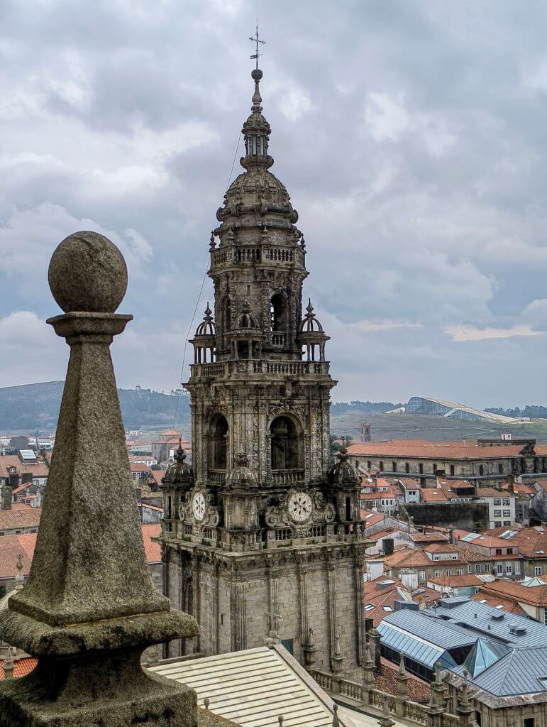 We zijn ’s ochtends door de omgeving en de oude stad gewandeld, daarna heerlijk geluncht in een uitstekend restaurantje. Na het middageten zijn we naar het museum in de kathedraal geweest. Groot en interessant. Later in de middag deden we de daken-tour. Even flink klimmen, maar boven word je beloond met een prachtig uitzicht over de stad en zie je pas echt hoe kolossaal dat gebouw is. We zagen ook een paar wandelaars aankomen die hun tocht hadden voltooid. Petje af, want het weer is de afgelopen weken niet bepaald geweldig geweest in Galicië. Die hebben flink moeten doorbijten.